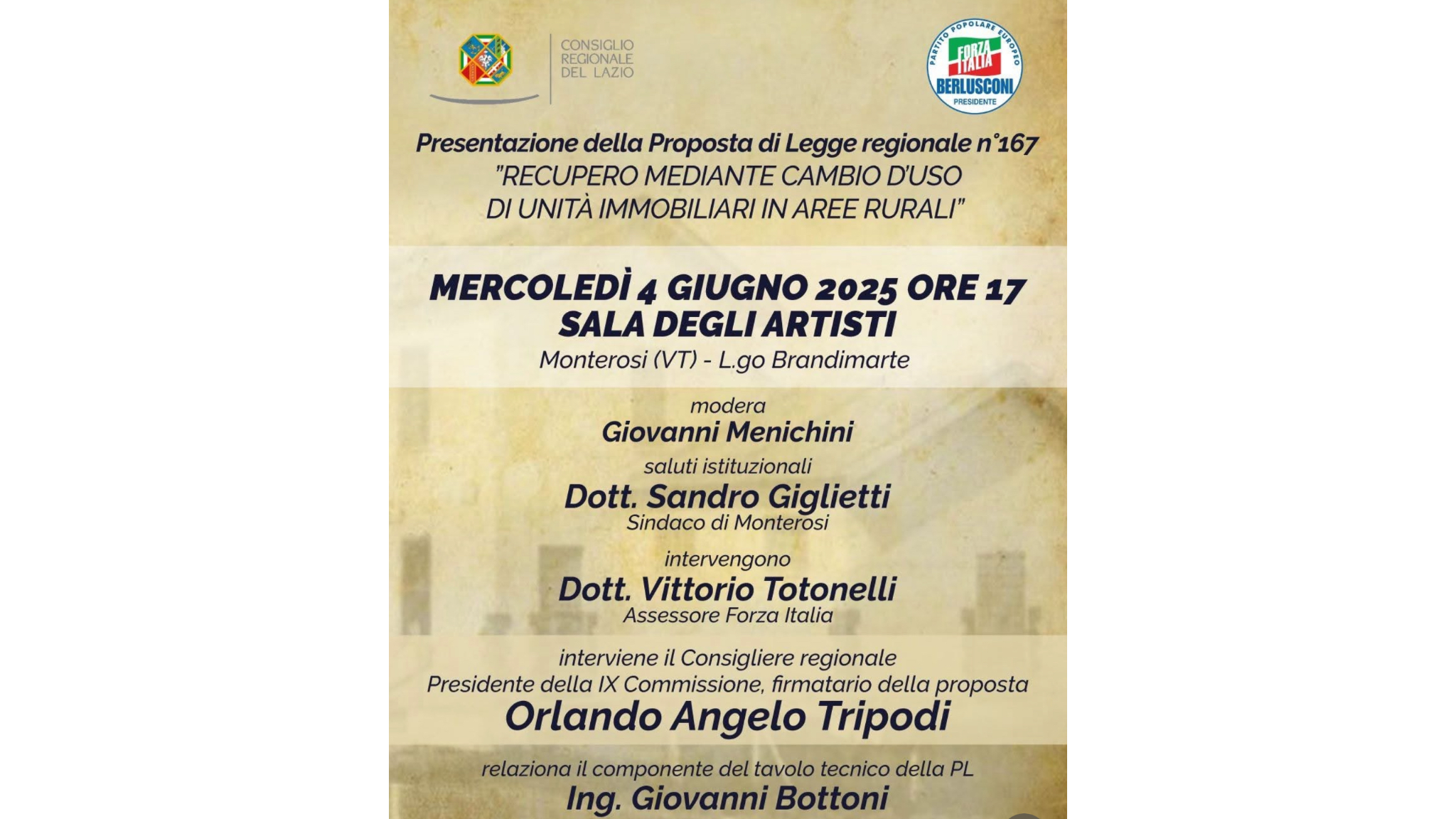 A Monterosi, Forza Italia finisce commissariata senza preavviso: la decisione ha colto di sorpresa iscritti e simpatizzanti. Lo scorso 31 maggio, il coordinamento provinciale guidato da Alessandro Romoli ha annunciato il commissariamento del circolo locale, nominando Vincenzo Petroni come commissario cittadino. Una decisione motivata, nel comunicato ufficiale, da “alcune iniziative portate avanti a nome del partito senza alcuna autorizzazione o condivisione con gli organi provinciali”. Un riferimento, nemmeno troppo velato, alla presentazione di un evento pubblico previsto per il 4 giugno, promosso con il simbolo del partito e incentrato sulla proposta di legge regionale n. 167 sul recupero di immobili in aree rurali.