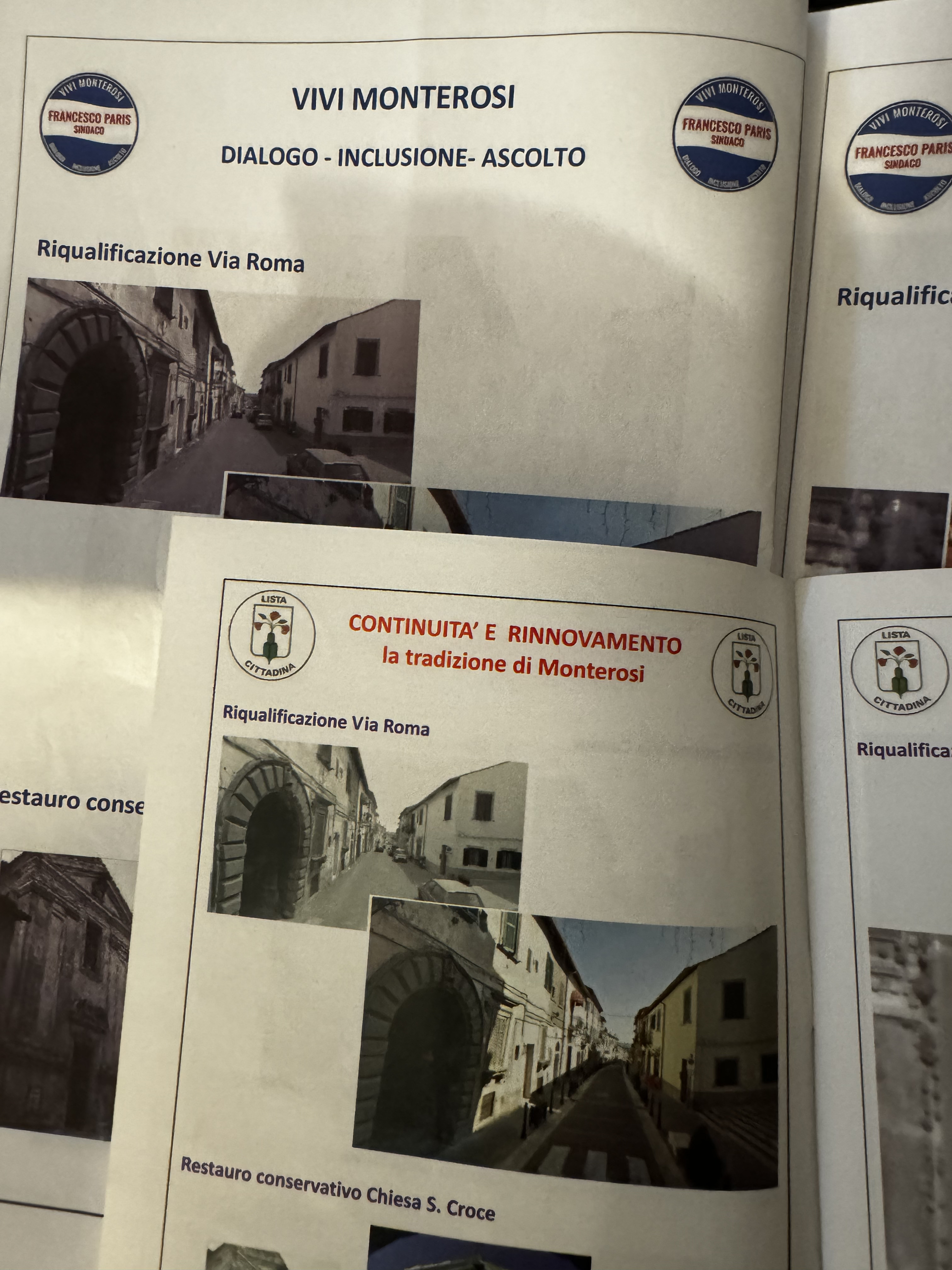 Ai cittadini, Vivi Monterosi normalmente si presenta con un kit delle cose fatte, un depliant apparentemente ben impaginato: peccato che dopo una veloce analisi, abbiamo scoperto che è un copia e incolla del programma delle comunali di Sandro Giglietti del 2014.