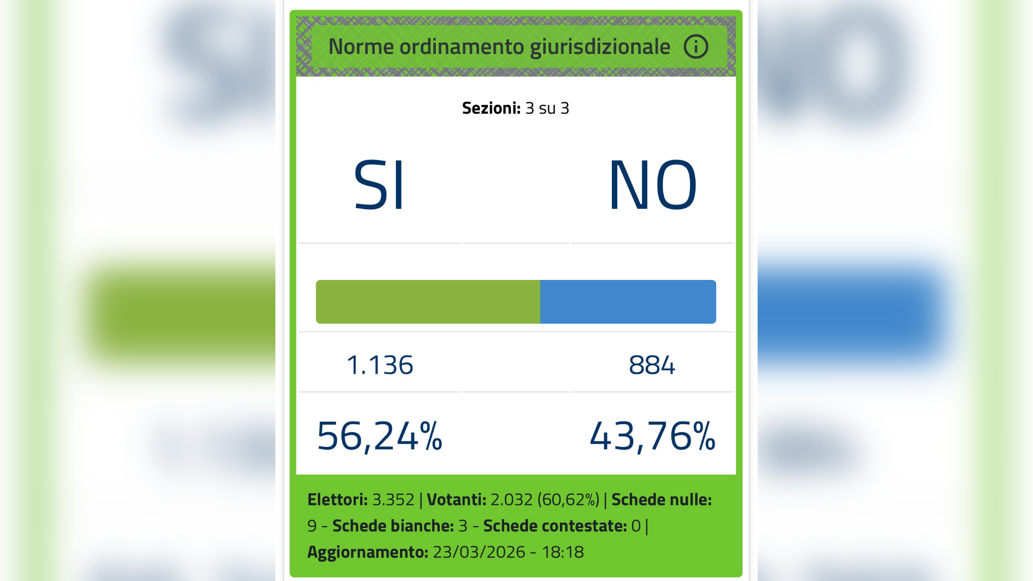 In questo quadro nazionale, Monterosi si muove in controtendenza. Su 3.352 aventi diritto hanno votato in 2.032, con un’affluenza del 60,62%. Nel nostro comune il SÌ prevale con 1.136 voti, pari al 56,24%, contro gli 884 voti del NO, fermo al 43,76%. Uno scarto di oltre 12 punti percentuali che ribalta completamente il dato nazionale e conferma un orientamento locale diverso.