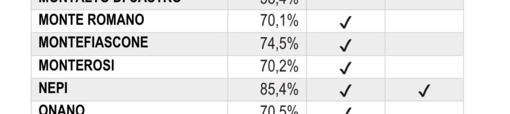 La provincia di Viterbo è oggi la più virtuosa del Lazio, con una media del 67,3%. Comuni come Nepi, Vetralla, Vasanello, Graffignano superano stabilmente il 75–80% e alcuni rientrano tra i “Comuni Rifiuti Free”, ovvero quelli che producono meno di 75 kg annui pro capite di rifiuto secco residuo. Monterosi, pur attestandosi intorno al 70%, non rientra tra queste eccellenze e non compare tra i comuni premiati o menzionati nel dossier regionale.