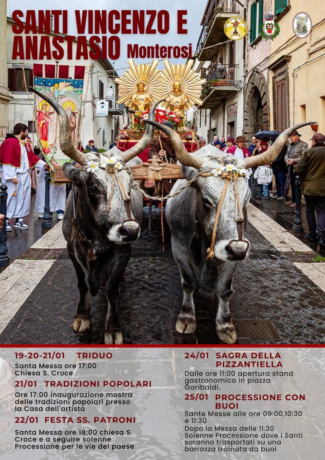 Monterosi celebra oggi i suoi santi patroni, San Vincenzo e Sant’Anastasio, in una giornata che richiama la comunità attorno alle proprie tradizioni religiose e alla memoria storica del paese. Questa sera, alle ore 18, nella chiesa di Santa Croce, sarà celebrata la messa solenne; al termine partirà la processione che attraverserà le vie del centro, uno dei momenti più sentiti delle festività patronali.